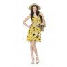Vestido sin mangas hasta la rodilla, tejido de gasa estampado. Escote pronunciado.
